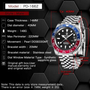 Đồng hồ Nam PAGANI DESIGN PD-1662 CHÍNH HÃNG – Đồng Hồ Automatic GMT 40mm, Máy DG5833GMT, Kính Sapphire, Vòng Bezel Ceramic, Chống Nước 100m