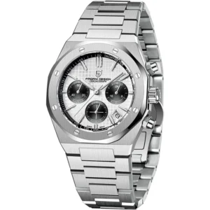 Pagani Design PD-1707 là mẫu đồng hồ chronograph thể thao cao cấp, được thiết kế dành cho nam giới yêu thích sự mạnh mẽ, chính xác và sang trọng. Sở hữu ngoại hình đầy thu hút với mặt số họa tiết nổi bật, kết hợp dây thép không gỉ chắc chắn và kính sapphire chống trầy, PD-1707 không chỉ là công cụ quản lý thời gian mà còn là tuyên ngôn phong cách.