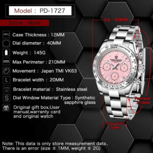 Đồng Hồ Nam PAGANI DESIGN PD‑1727 – Quartz Chronograph Seiko VK63, Size 40 mm, Kính Sapphire, Vỏ & Dây Thép 316L, Chống Nước 100 M