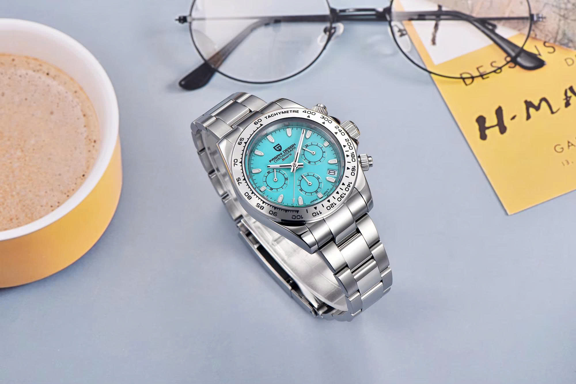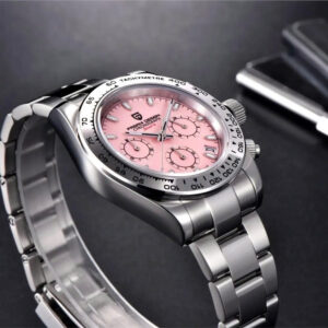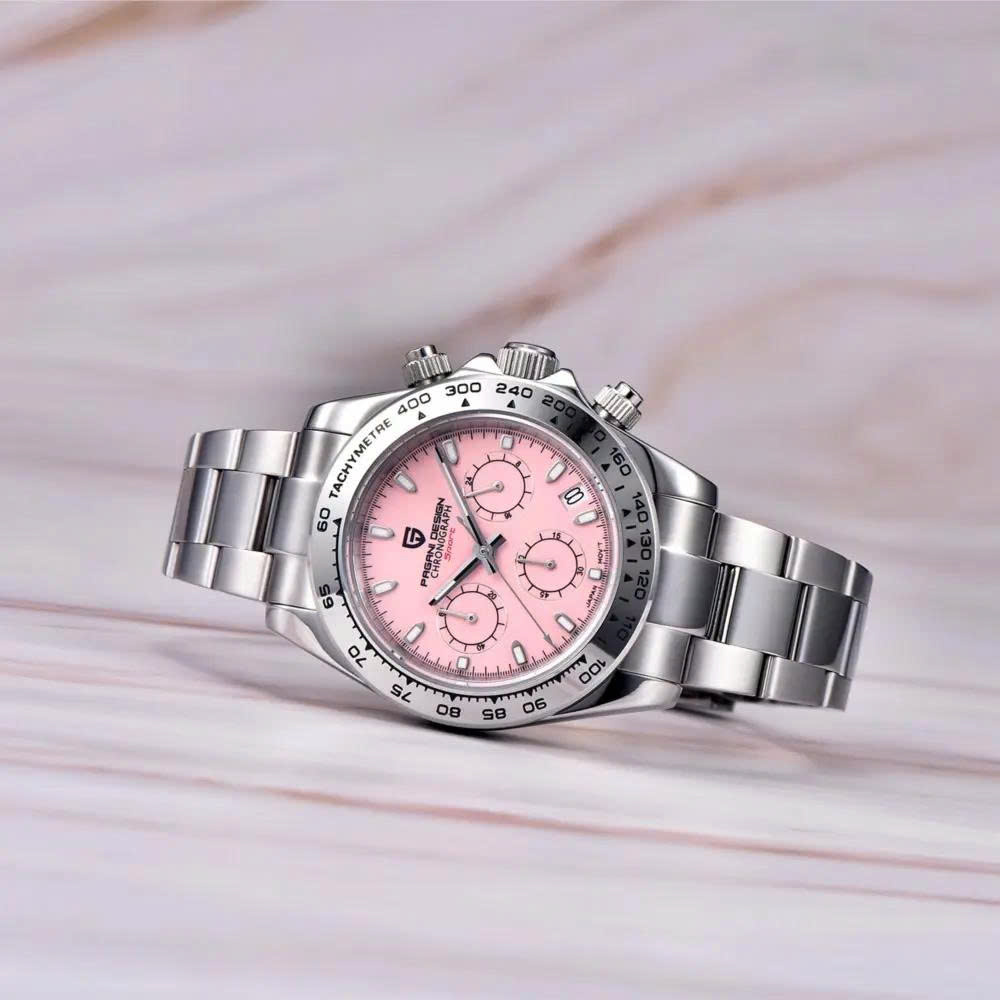 – Thiết kế homage Daytona/Submariner: đẹp cá tính, đa màu mặt (xanh dương, xanh lá, hồng, trắng, đen…)