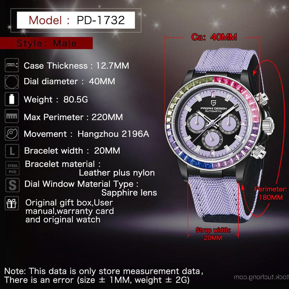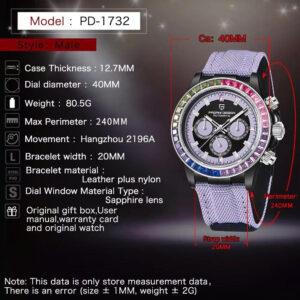 Đồng Hồ Nam PAGANI DESIGN PD‑1732 – Máy Cơ Hangzhou 2196A, Size 40mm, Bezel Cầu Vồng, Kính Sapphire, Chống Nước 100M
