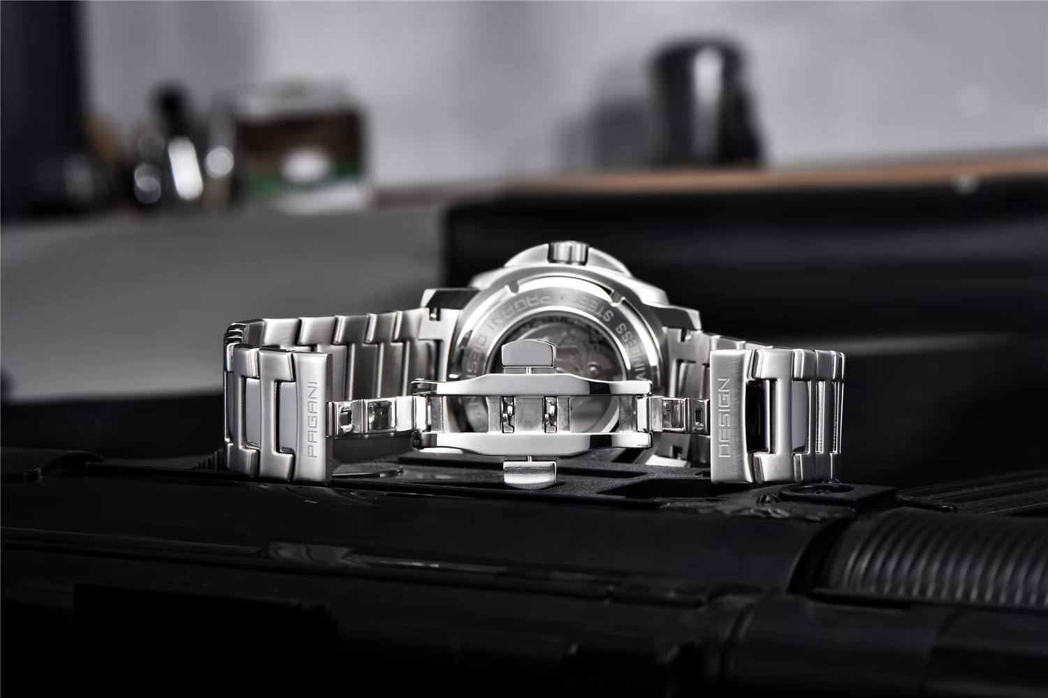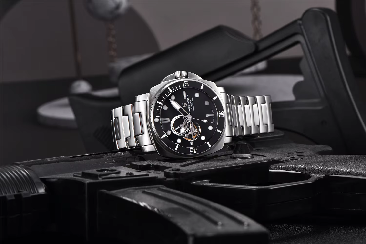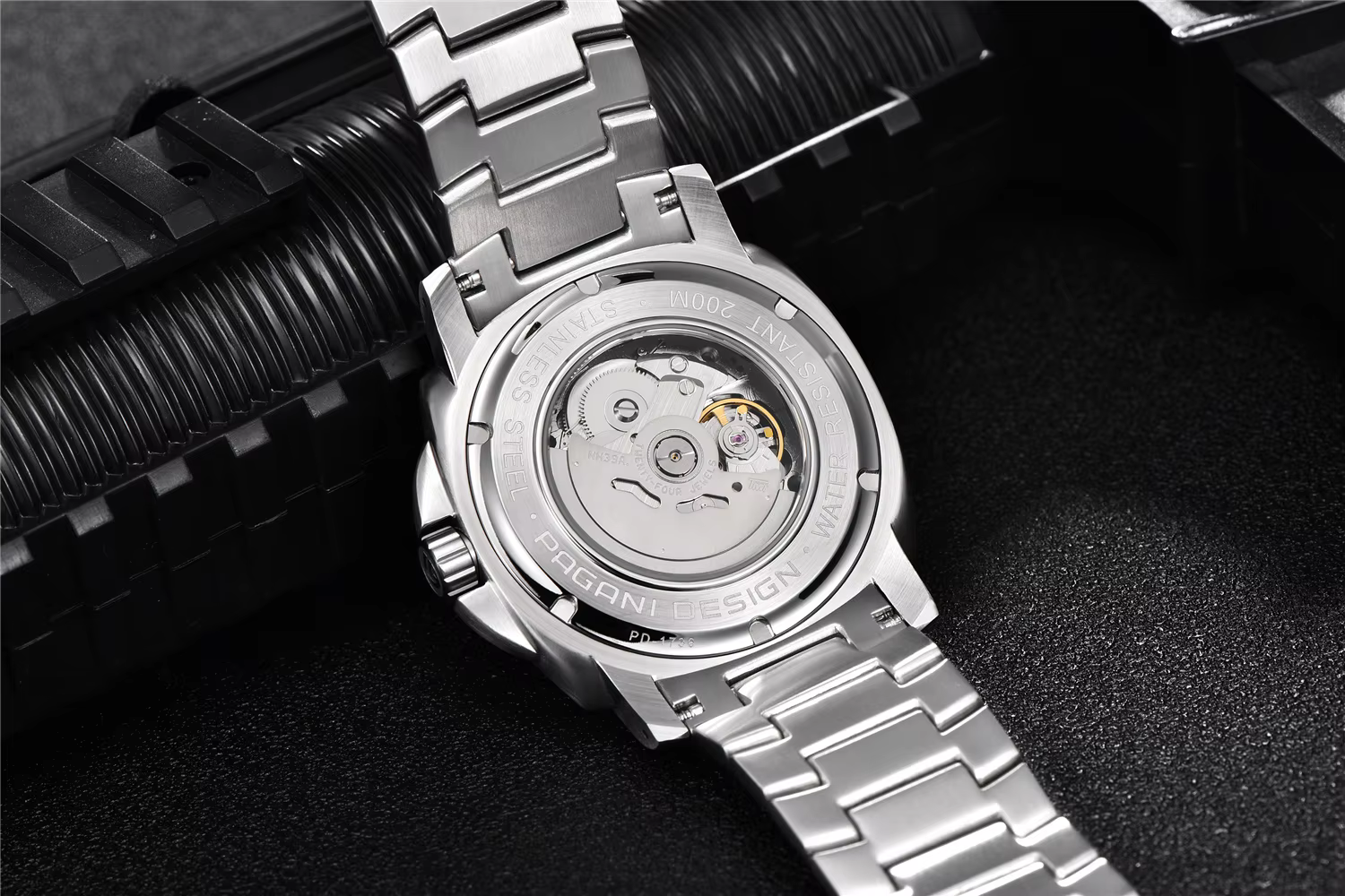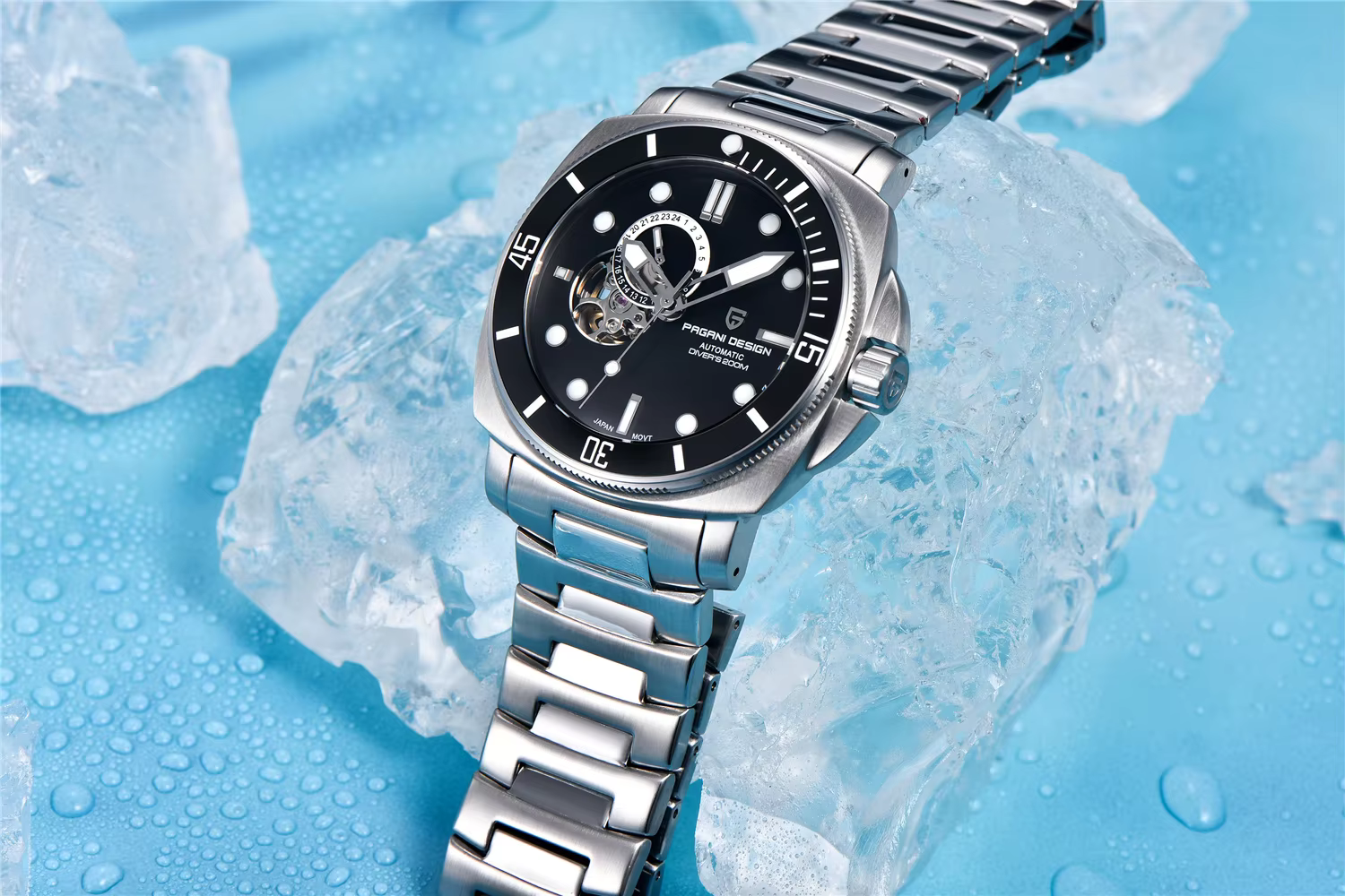 Pagani Design PD-1736 là mẫu đồng hồ cơ 3 kim không lịch với open heart tại vị trí 9h, mang lại trải nghiệm thị giác đặc biệt khi nhìn thấy bộ máy đang vận hành ngay trên cổ tay. Thiết kế tối giản, mặt số clean, đi cùng bộ kim dauphine sắc nét, tạo nên một chiếc dress watch hiện đại, nam tính nhưng vẫn đầy chất cơ khí.