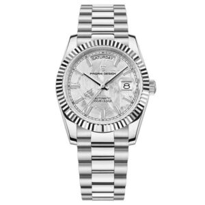 Thiết kế homage dòng Rolex Day-Date President, mang vẻ lịch lãm sang trọng ở kích thước 36mm phù hợp cho cổ tay vừa và nhỏ