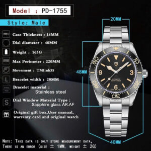 Pagani Design PD-1755 – Đồng Hồ Diver Automatic Nam 40mm, Máy Seiko NH35A, Kính Sapphire, Chống Nước 100m