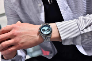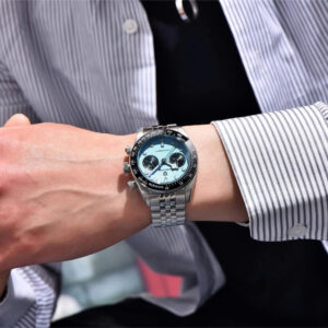 Thiết kế mặt số Panda huyền thoại: Nền trắng, sub-dial đen – biểu tượng của dòng chronograph thể thao cổ điển.