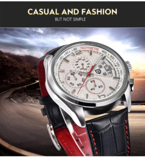 – Thiết kế chronograph 3 sub-dials thể thao mạnh mẽ, có tính năng đo thời gian chính xác
