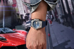 Mặt số guilloché nhấn nhá lộ máy skeleton nhỏ, tạo điểm nhấn hấp dẫn, pha nét thể thao & thời trang