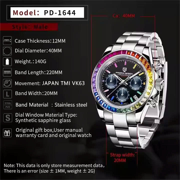 Thông số ĐỒNG HỒ PAGANI DESIGN PD-1644 RAINBOW BEZEL CHÍNH HÃNG